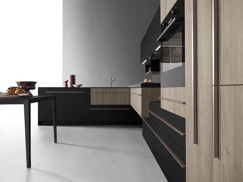 Meble kuchenne w czerni i drewnie