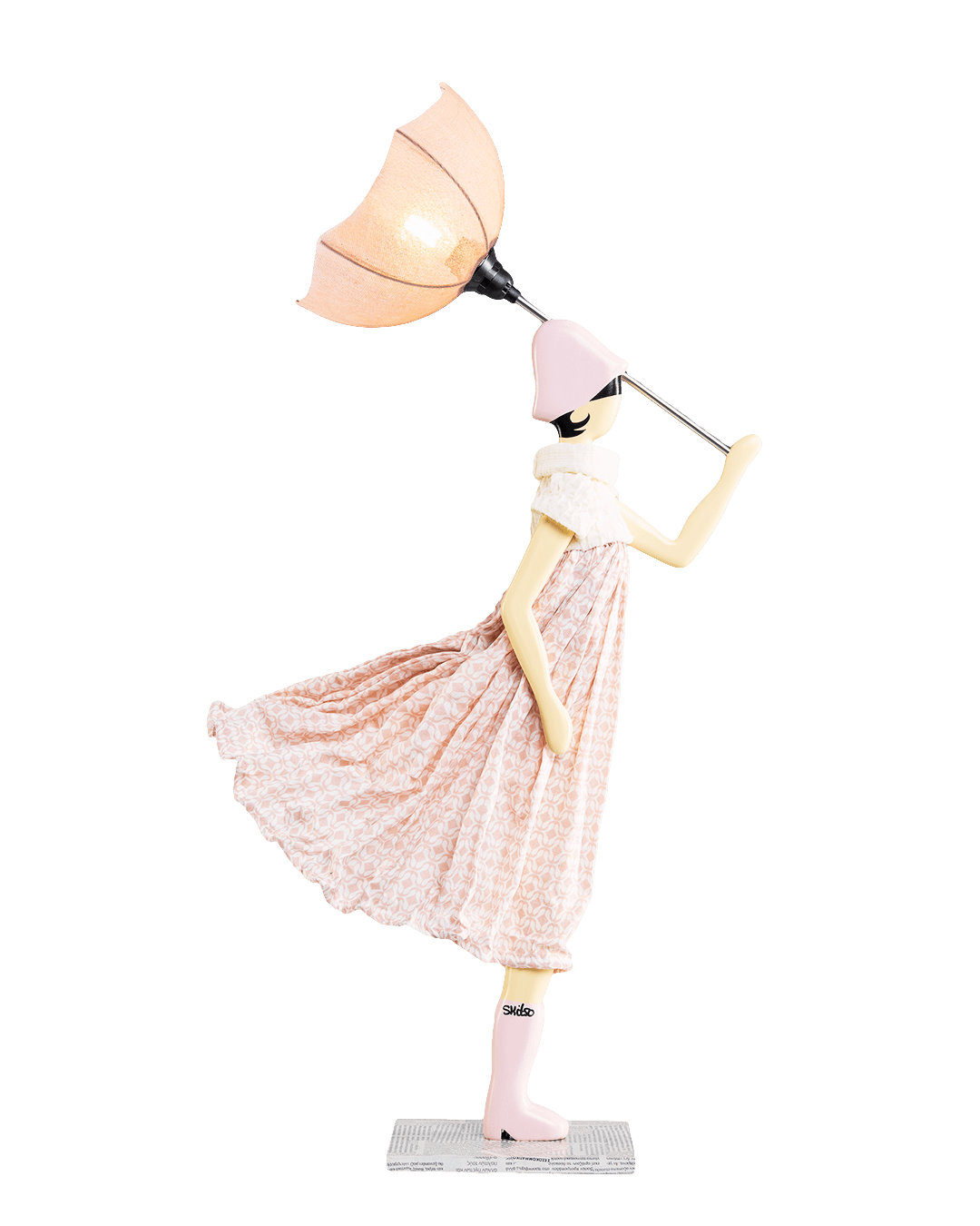 Różowa lampa dziewczynka z uroczym kwiatkiem w dłoni to projekt marki Skitso.